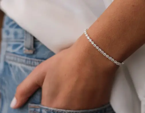 Una joya que celebra la elegancia en su máxima expresión. Elaborada en plata 925 de alta calidad, esta pulsera incorpora cristales finamente incrustados que aportan un brillo sutil y sofisticado.